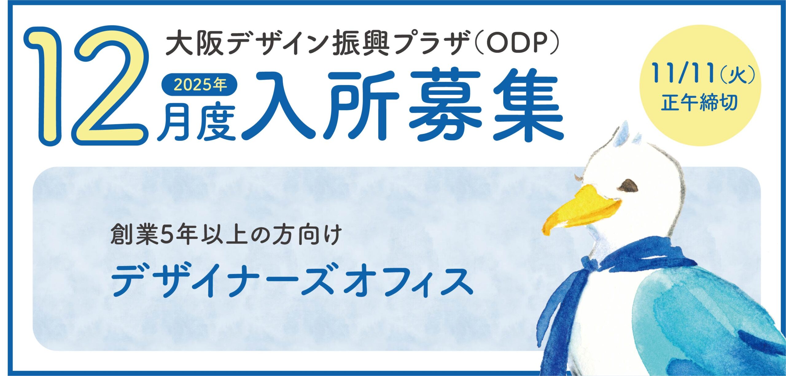 ODPは大阪で活動するデザイナー、クリエイターをより多く輩出し、大阪の経済発展に貢献していくことをめざします。