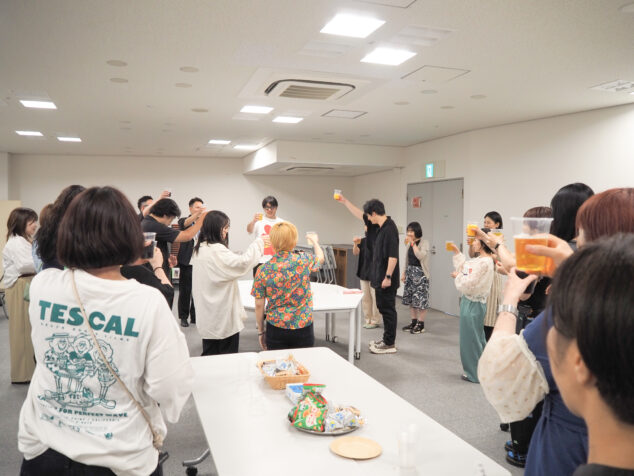 同会場内で行われた交流会では、お菓子とジュースを飲みながら名刺交換や交流を楽しめる時間が設けられました。