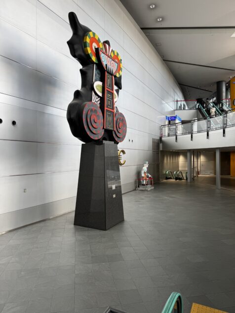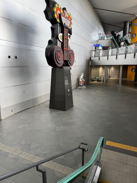 なぜ、関西万博ではなく「大阪・」がついているのか?、なんとなくカッコ悪いと思う私ですが、それは置いておいて、その関西万博のメインキャラクターである「ミャクミャク」のモニュメントが今はATCにあります。ドーンと目立つところに設置されています。
