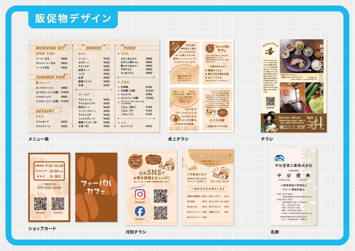 ショップカード、パネル、グッズなど、店舗で使えるアイテムをデザイン制作