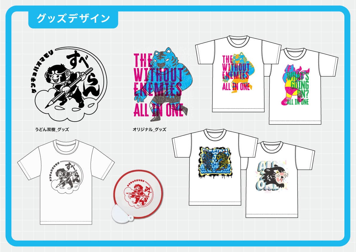 オリジナルイラストや企画を活かしたTシャツ・アパレル商品のデザイン制作。
